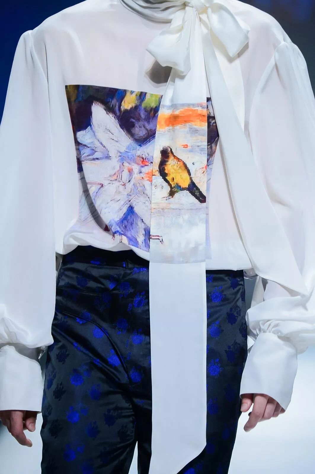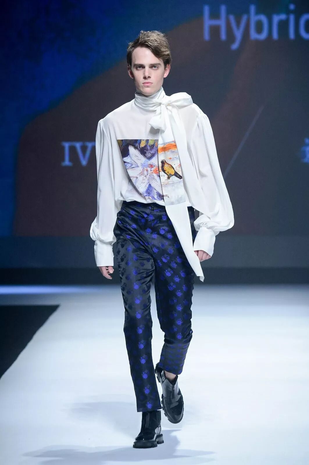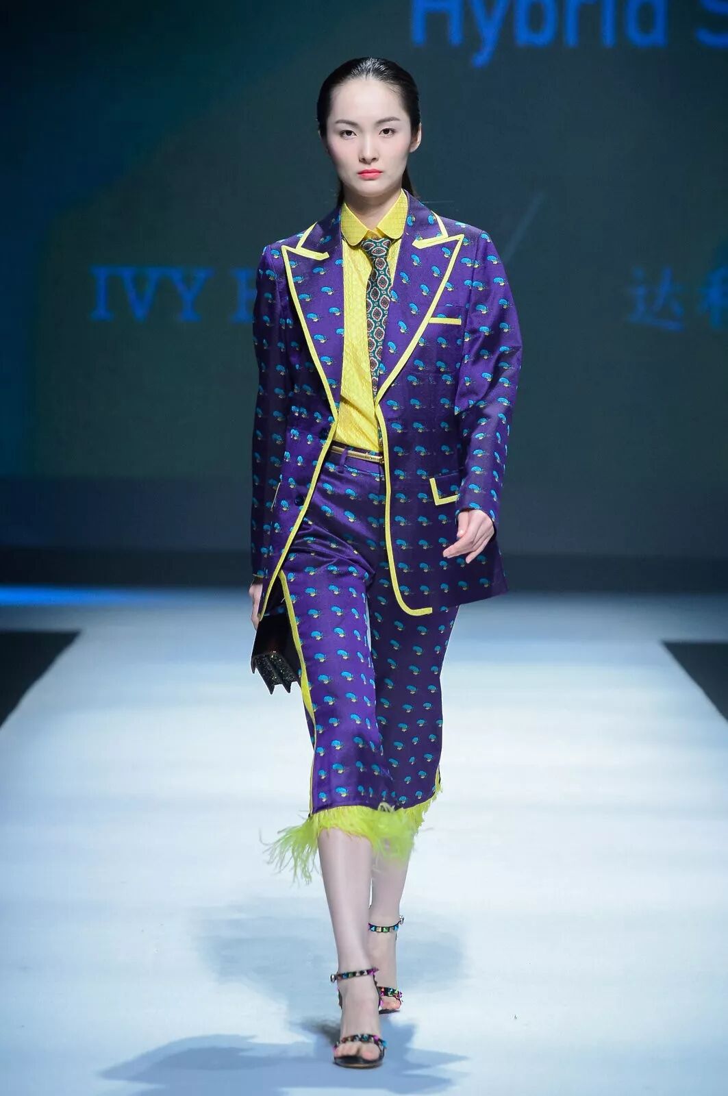 以上两套服装的面料图案印花来自“人工智能纺织面料设计”。人工智能纺织面料设计基于全球领先的微软人工智能情感化设计计算框架,融合了计算机视觉识别、自然语言理解、对抗式生成网络等技术,大量快速学习并吸收了人类历史上优秀的艺术作品与设计图案,并结合中国纺织信息中心/国家纺织产品开发中心纺织服装流行趋势研究成果,通过人工智能的灵思与创造,生成海量能够满足时尚产业链制造与消费的专业设计作品。