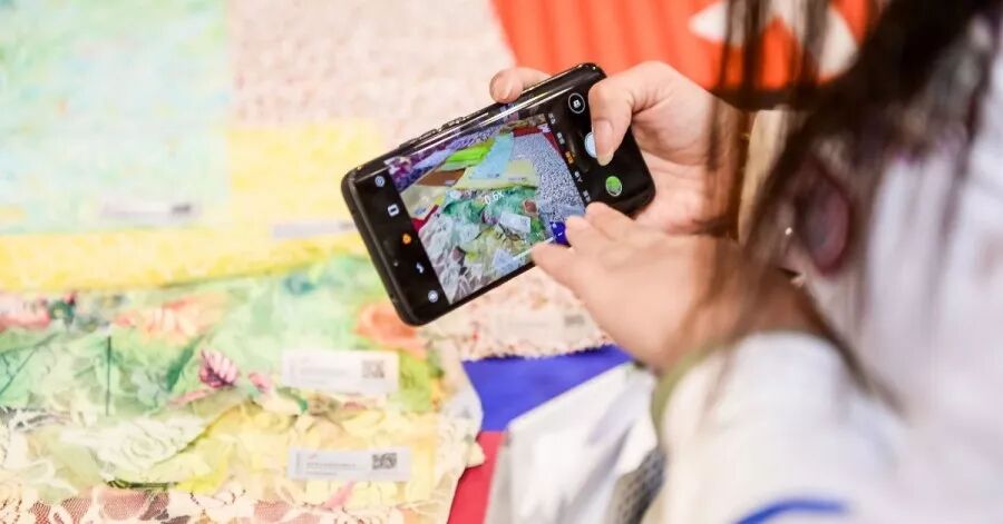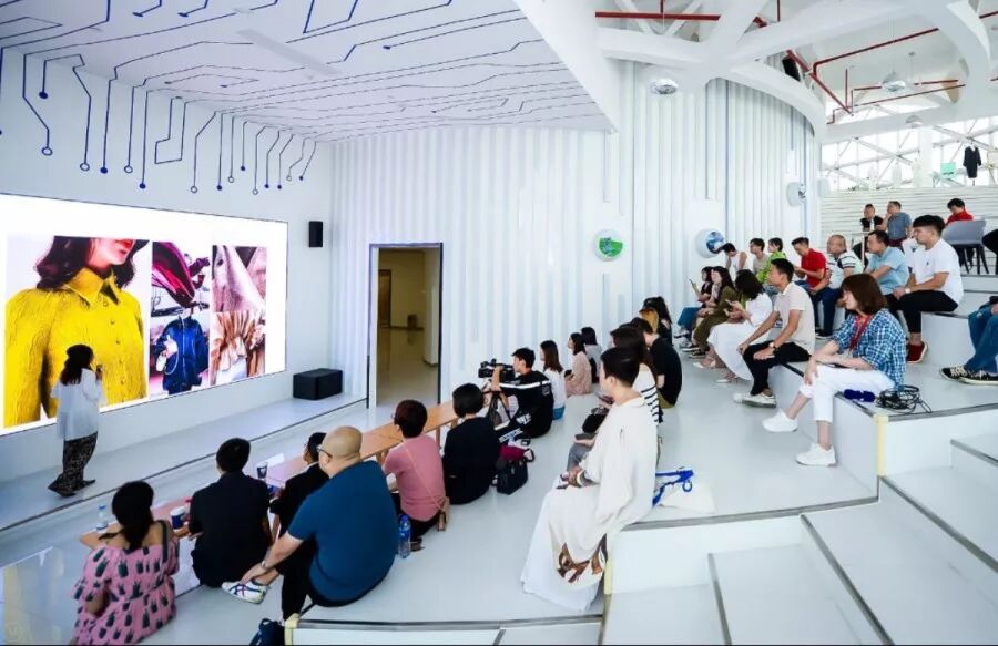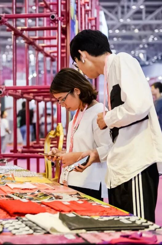 值得一提的是,本次展示每款陈列的面料产品都植入了人工“芯片”(面料产品详细信息),并结合由中国纺织信息中心设计开发的人工智能工具体验,为参观者提供色彩、设计、面料选择等方面的服务,观众可通过扫描面料上的二维码即可获得面料与生产商的更多详情,并可在流行趋势专业逻辑与信息指导下进行面料搜选和对接,快速建立上下游合作。